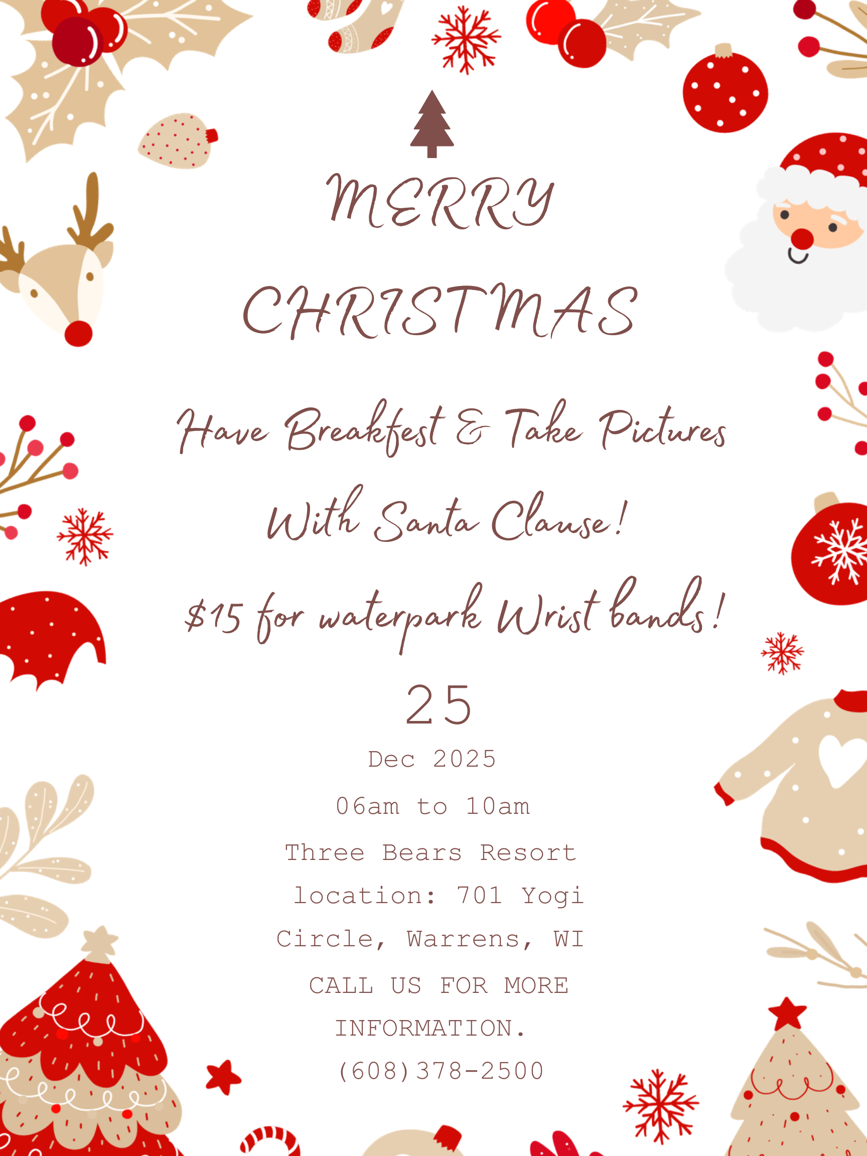 Have breakfast and take photos with Santa Clause! Enjoy $15 waterpark wrist bands!