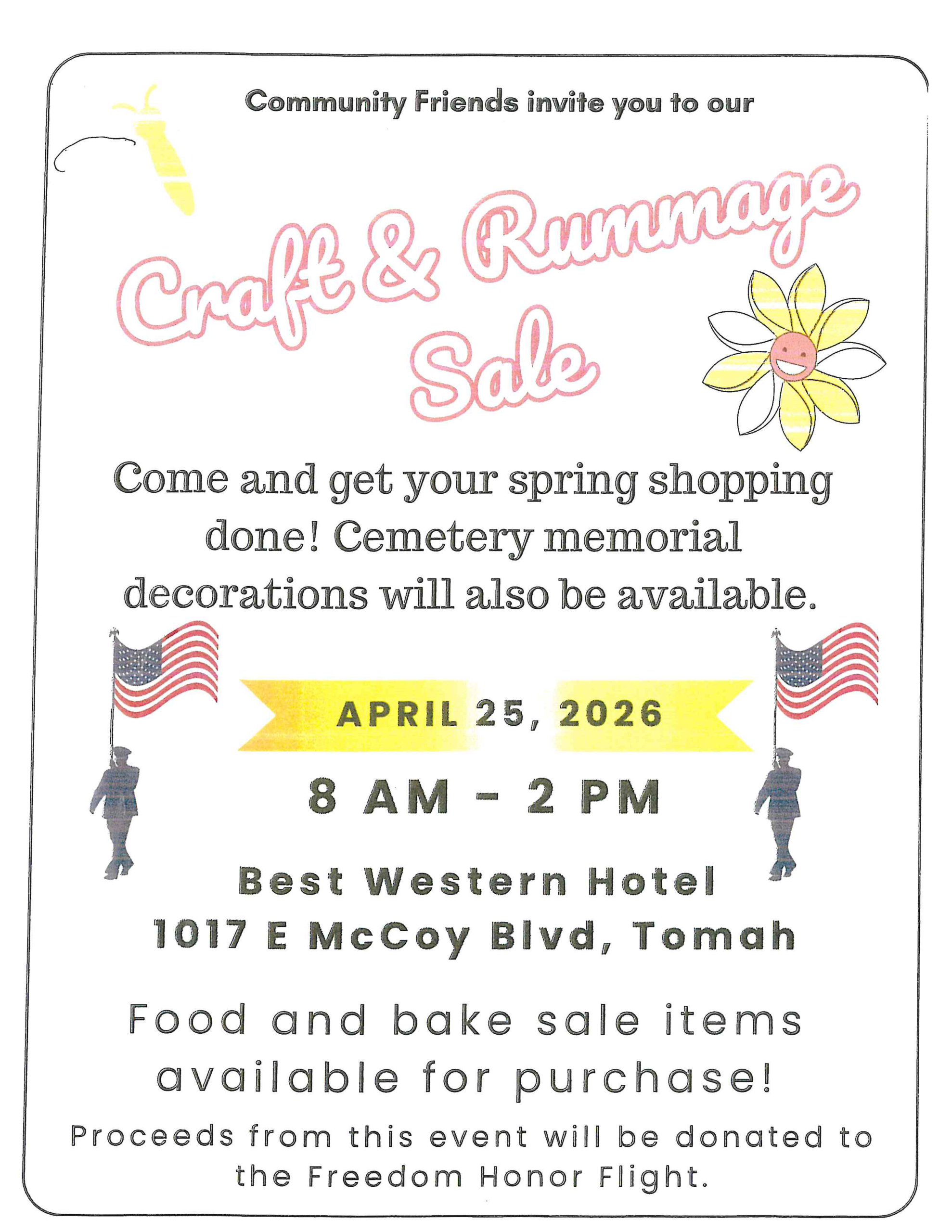 While you shop, enjoy delicious food and baked goods available for purchase. Best of all, your support makes a difference—proceeds from the event will benefit the Freedom Honor Flight.