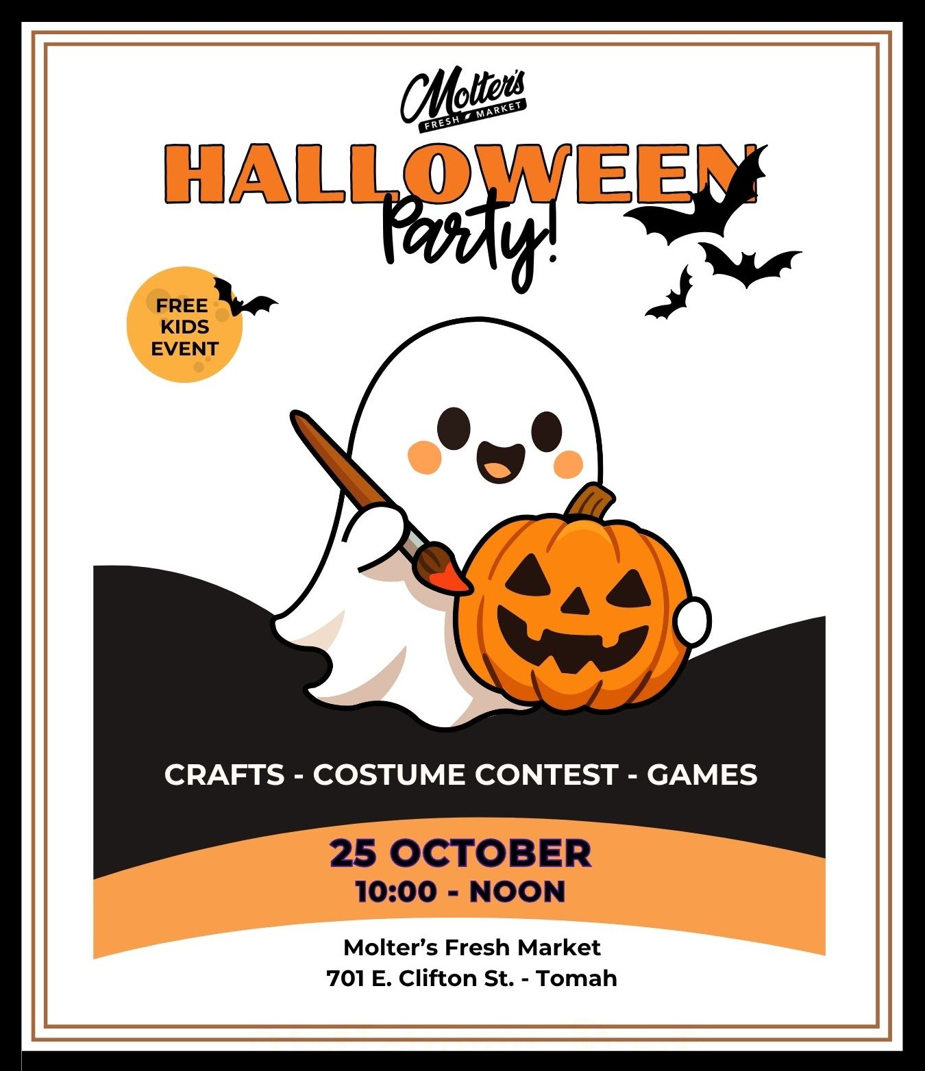 It’s a Halloween Party! Bring the kids dressed in costume for this free, fun event! Enjoy crafts, costume contest, and games.