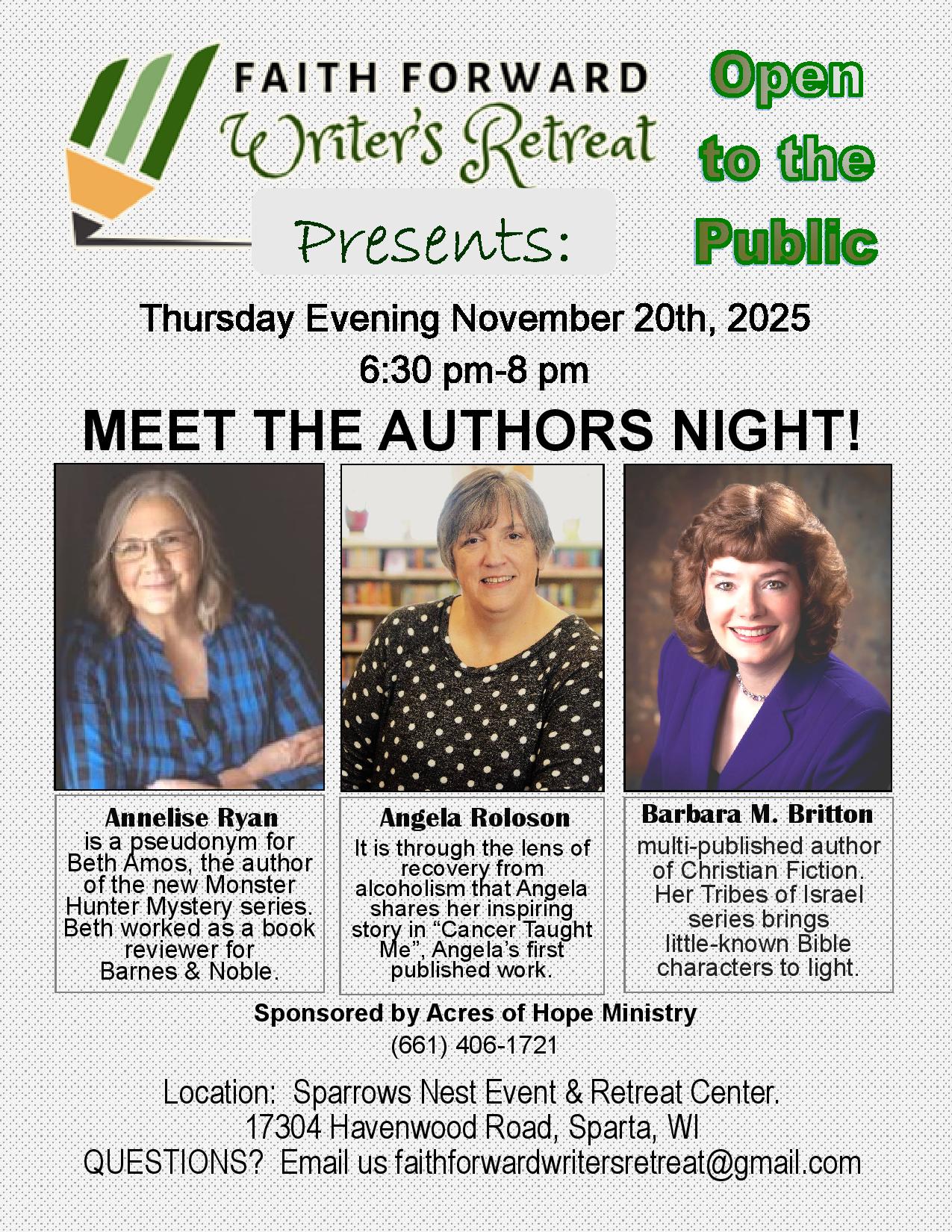 Questions: 661-406-1721 | faithforwardwritersretreat@gmail.com