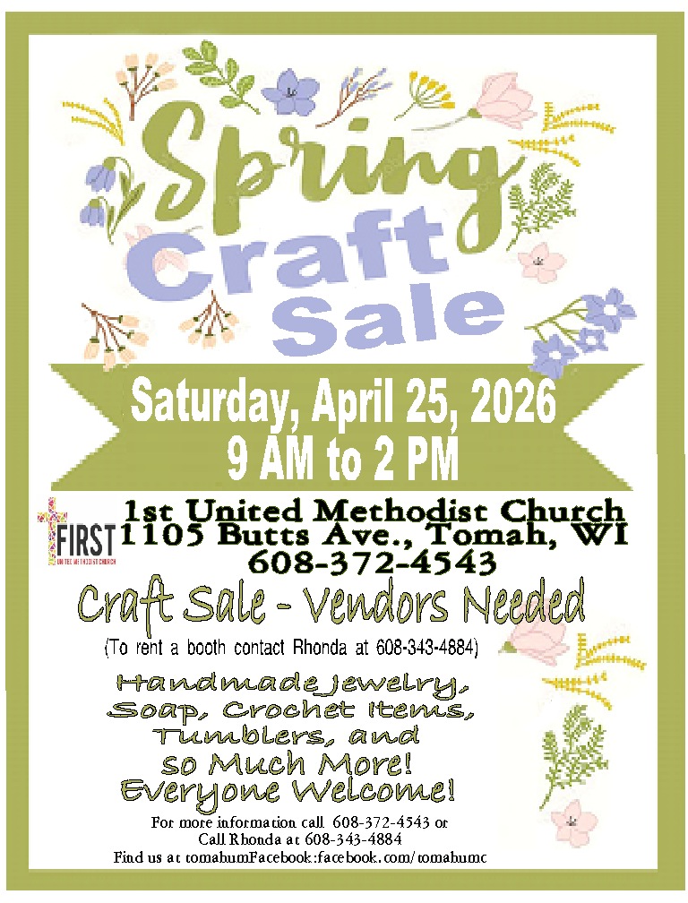 Location: 1st United Methodist Church, 1105 Butts Ave, Tomah, WI