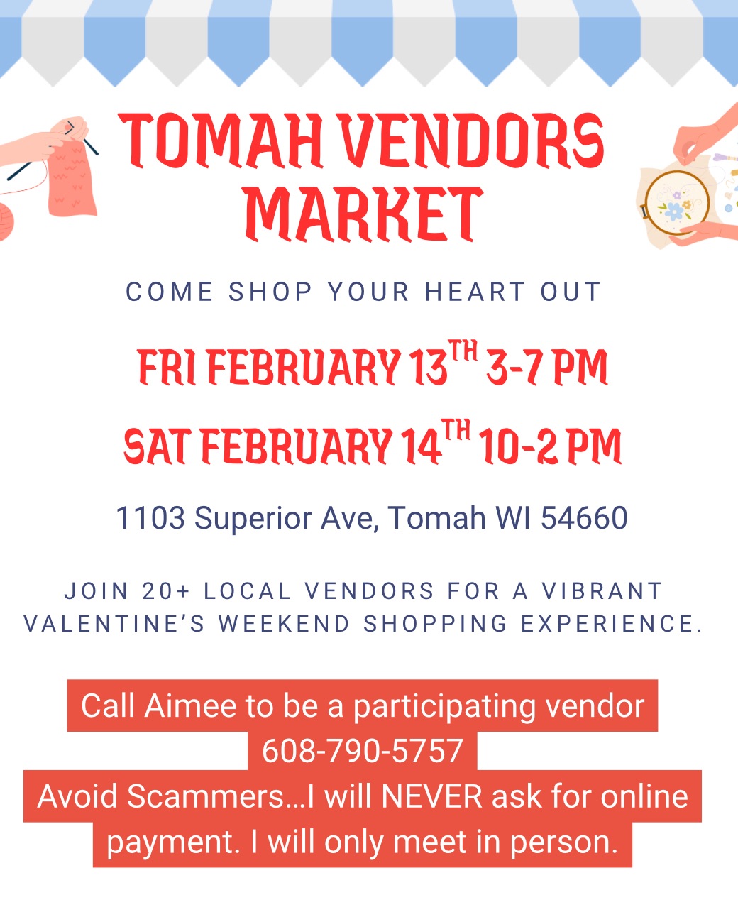 Please note: the event host will never request online payment and will only accept vendor fees in person at the event location.