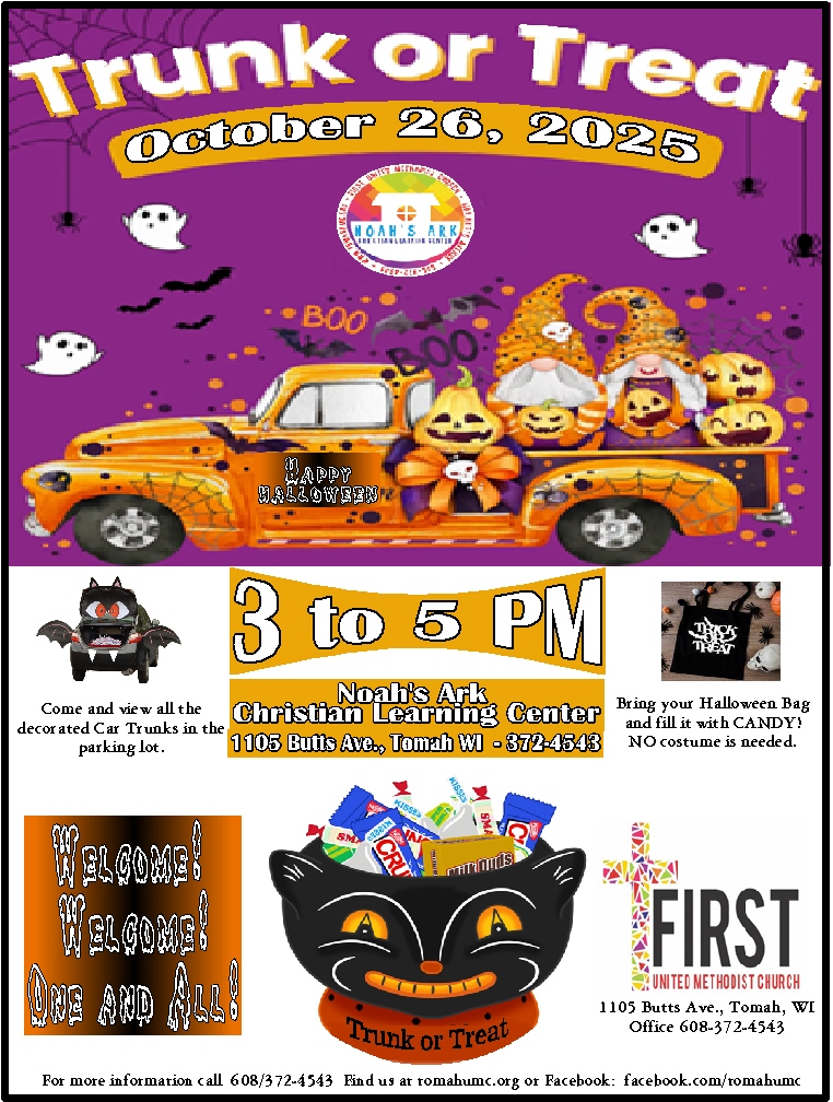 Come and view all the decorated Car Trunks in the parking lot. Bring your Halloween Bag and fill it with candy! No costume is needed.